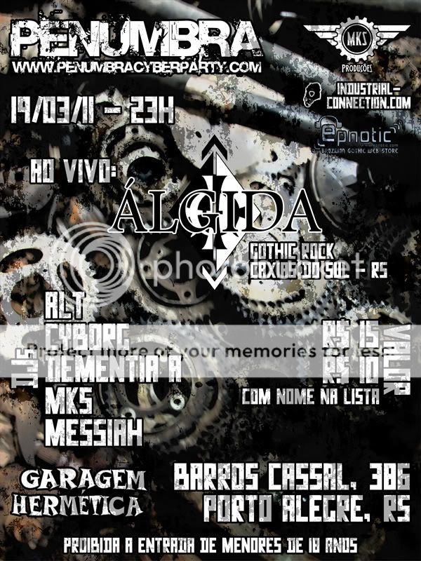 Sempre procurando diversificar e trazer o melhor da cultura gótica/industrial, a Penumbra Cyber Party apresenta, nessa edição, a banda Álgida, de Caxias do Sul - RS.